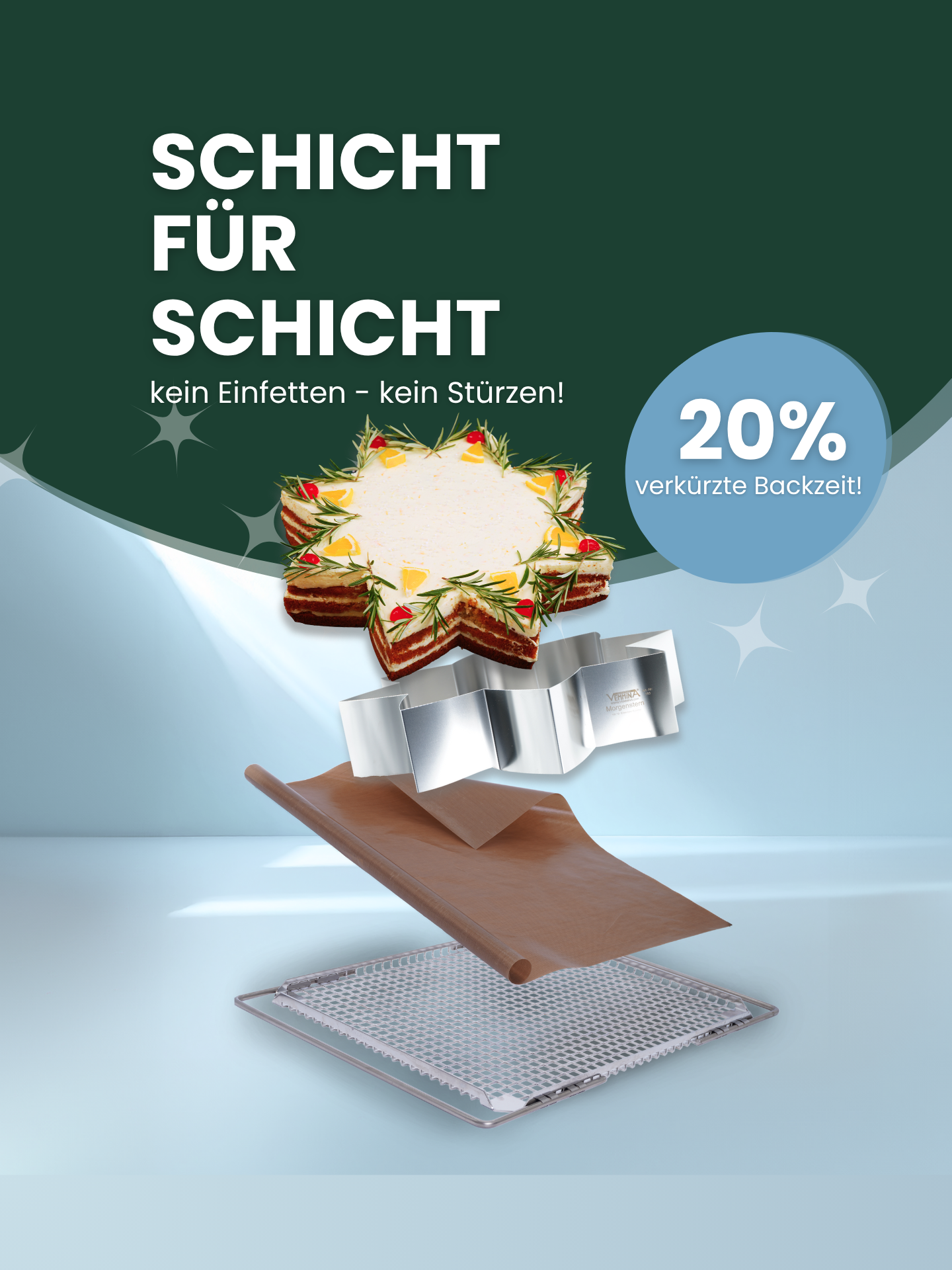 kein Einfetten der Backformen | Schichten & Einsetzen direkt in der Form | 20% verkürzte Backzeit | vielfältige Auswahl: +100 Backformen | einmalige Anschaffungskosten | kein Stürzen deiner Backwerke | egal ob Profi oder Anfänger | 30 Jahre Garantie | formstabil | spülmaschinengeeignet | Hergestellt in Deutschland